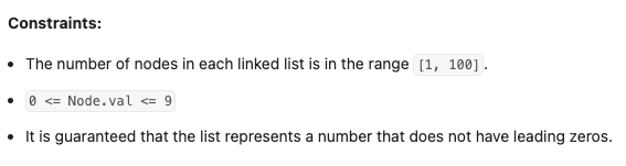 1) node 객체 : l1, l2의 digit들을 더한 값을 node.next에 넣고 자신을 node.next로 갱신하여 합한 값을 연결시키기 위함